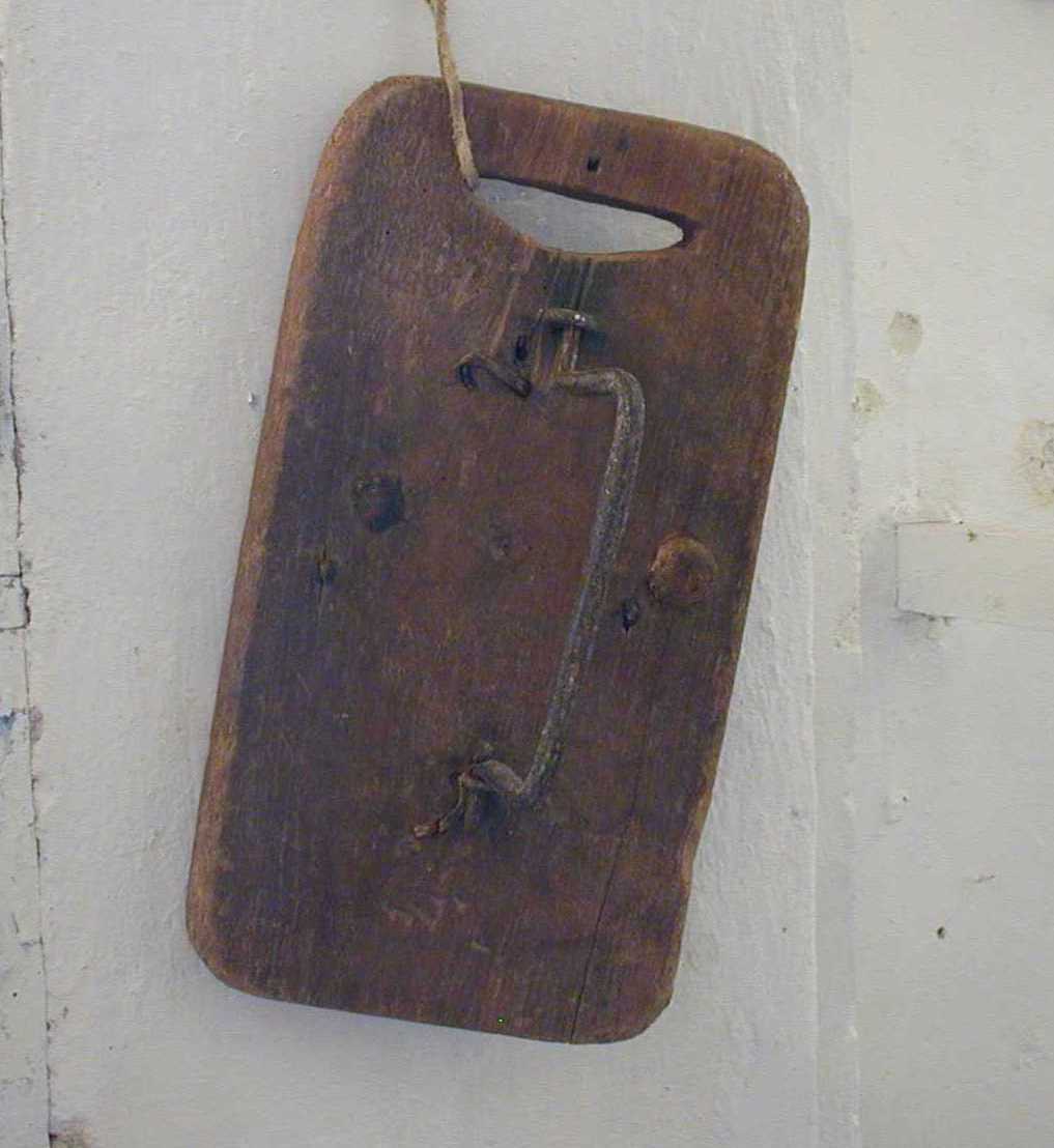 Asse rettangolare costituita da due impugnature di legno poste alle estremità e da due battagli in ferro movibili.